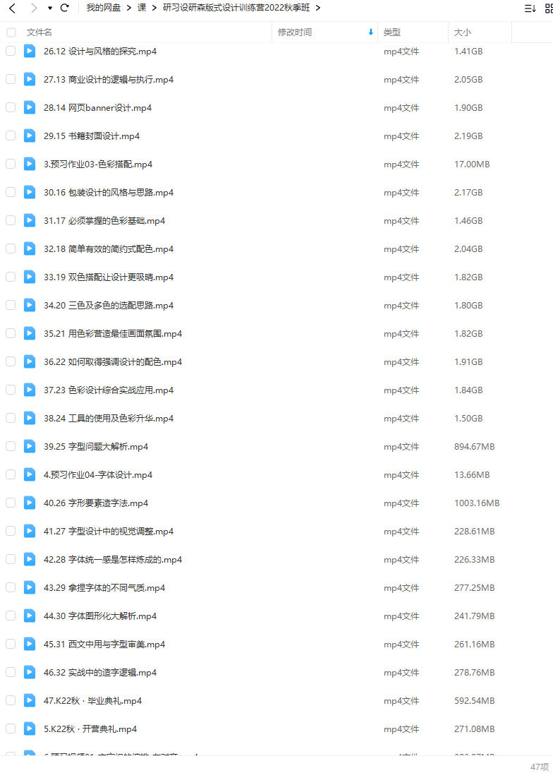 研习设研森版式设计训练营2022秋季班K先生【画质不错只有视频】 平面设计 3.84k 推广 【说明】秋季班2022年12月结课,课程讲师:K先生、三辰等人,正课第一节是第14-01文字在版式中的作用,前面1-13的预习视频可以不看 资源下载下载价格9.9 白嫖币终身VIP免费立即购买此资源购买后7天内可下载。 0 0 平面设计