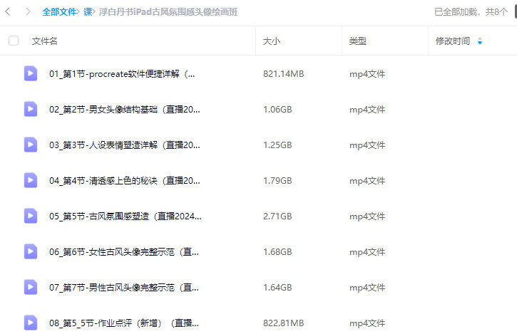 浮白丹书iPad古风氛围感头像绘画班2024【画质高清只有视频】